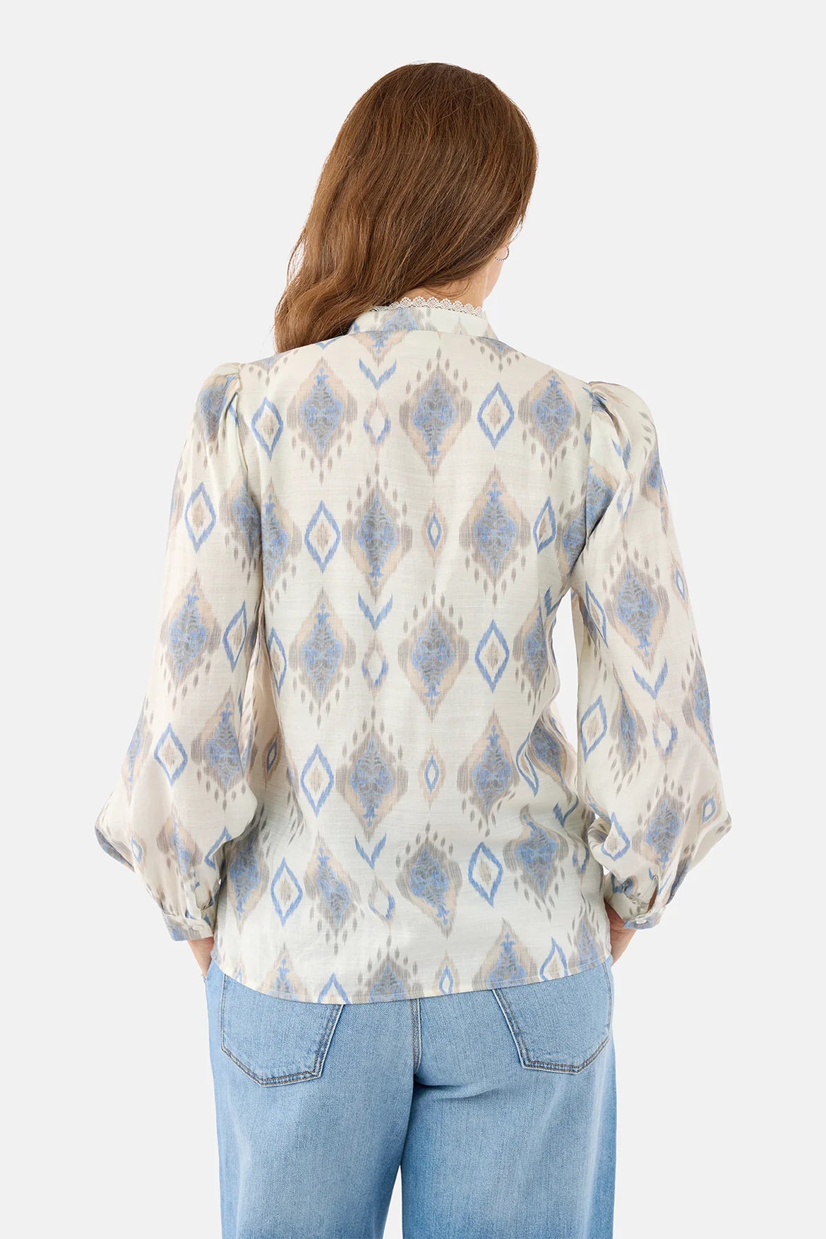 Off White Shirt with Lace Detail and Aztec Print