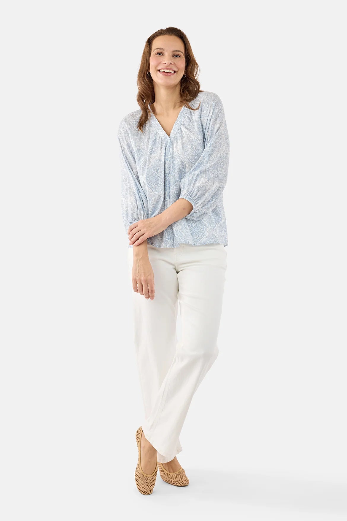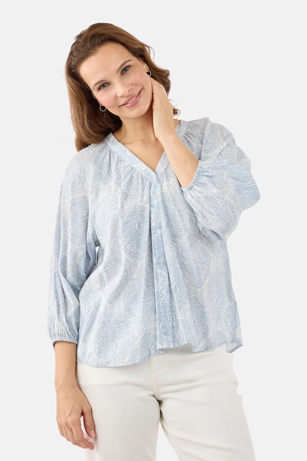 Elevate your everyday wardrobe with this stunning paisley print blouse, where timeless pattern meets modern comfort. The elasticated sleeves offer a flattering, adjustable fit that moves with you throughout your day, while the intricate paisley design adds sophisticated visual interest to any outfit. Perfect for layering or wearing solo, this versatile piece transitions seamlessly from office to weekend gatherings. The thoughtful sleeve detail ensures you'll reach for this blouse again and again, making it an essential addition to your collection.