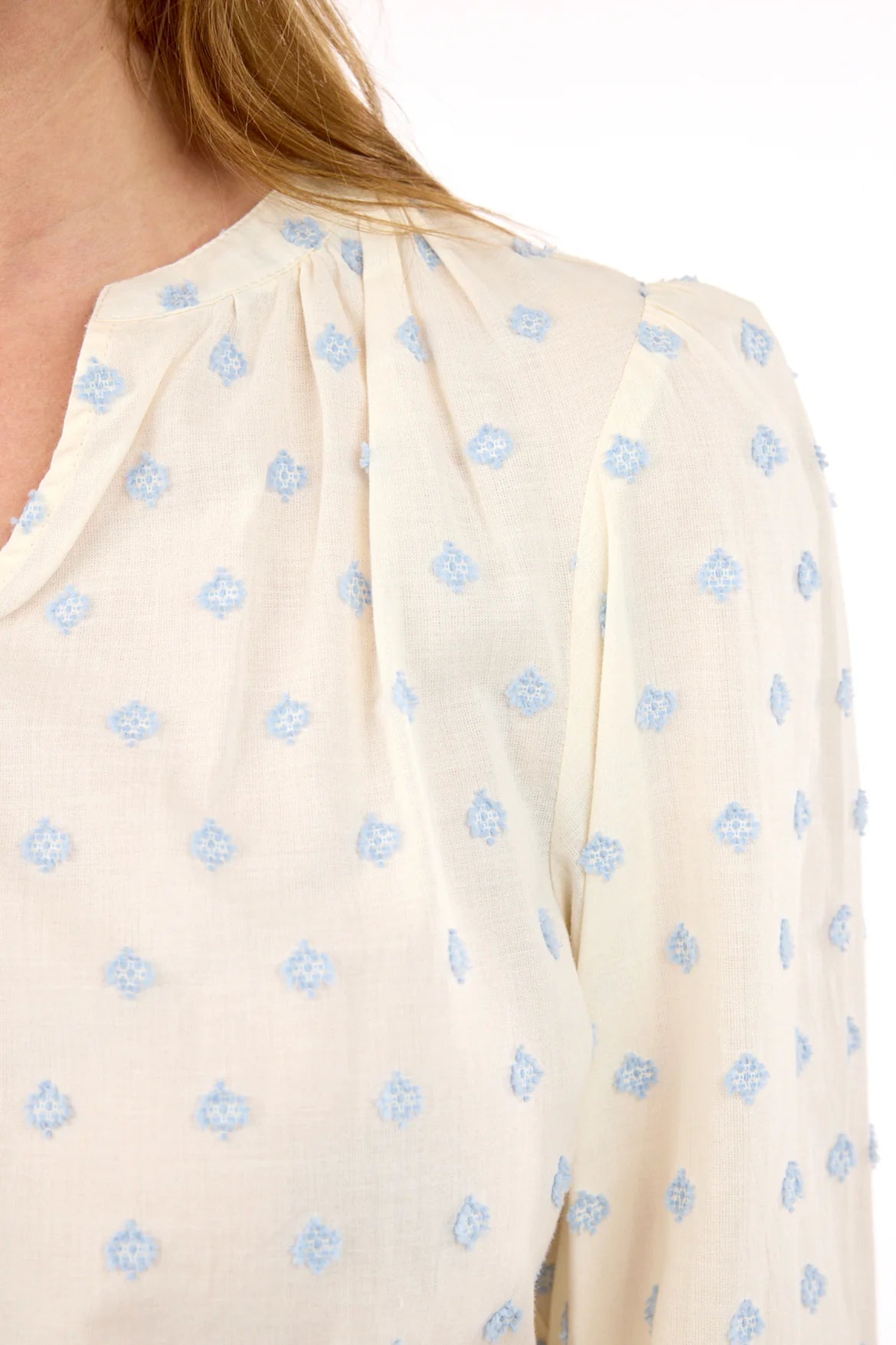 Elevate your everyday wardrobe with this striking white blouse, featuring an eye-catching blue symbol design that adds instant character and sophistication. The crisp white fabric provides a clean, versatile canvas, while the bold blue motif serves as a statement piece perfect for layering or wearing solo. Whether you're dressing for the office, a casual outing, or weekend brunch, this blouse effortlessly transitions between occasions. The thoughtful design detail transforms a classic silhouette into something truly memorable, allowing you to express your personal style with confidence and flair.
