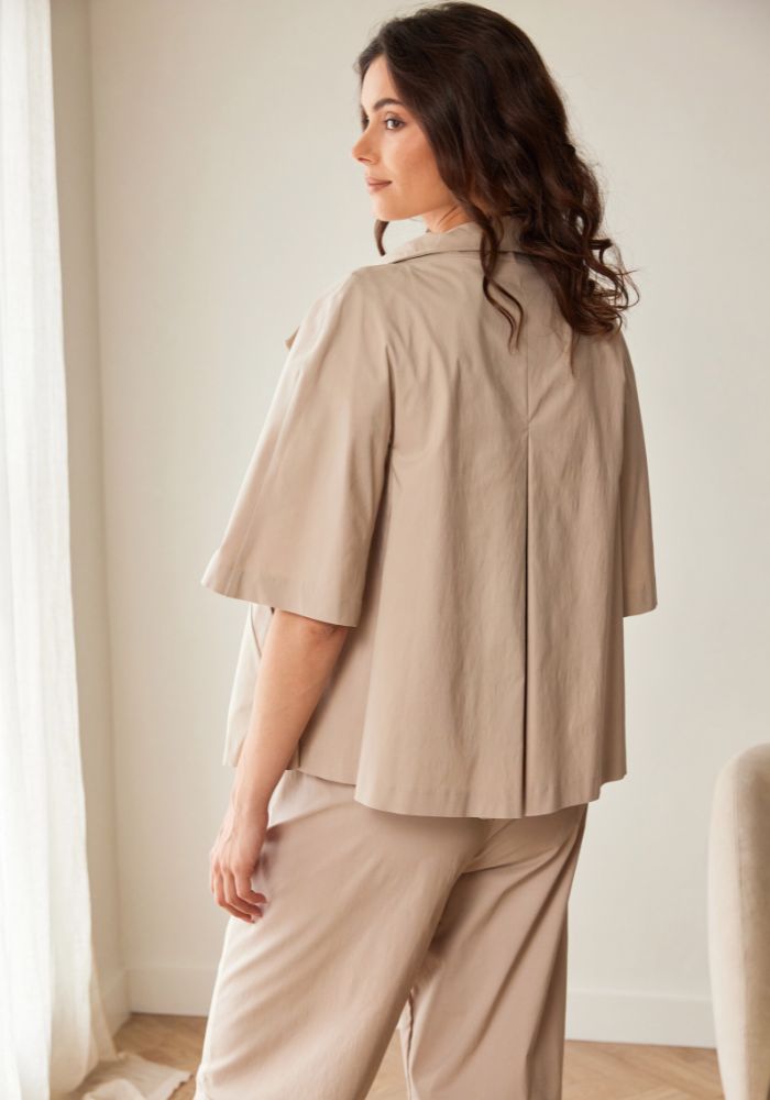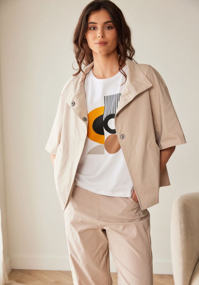 Beige Button Up A-Line Jacket with Pockets