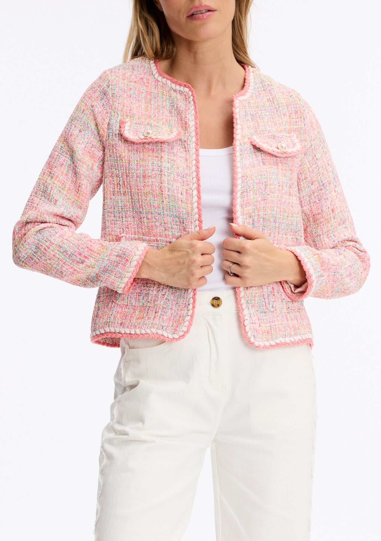 Multicoloured Tweed Jacket with Pearl Button Detail