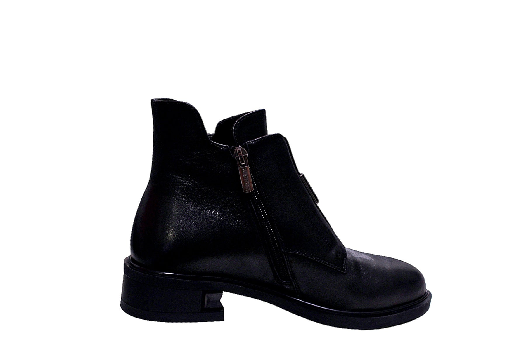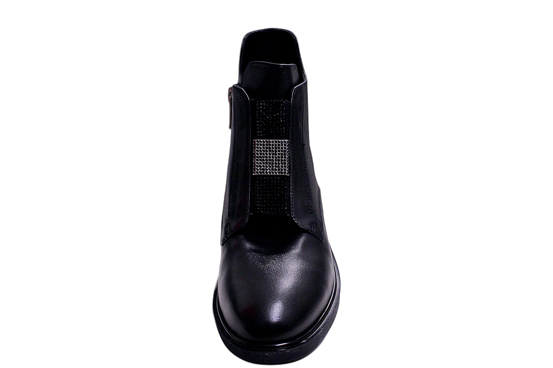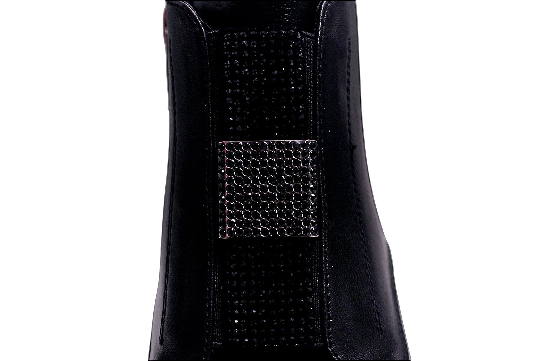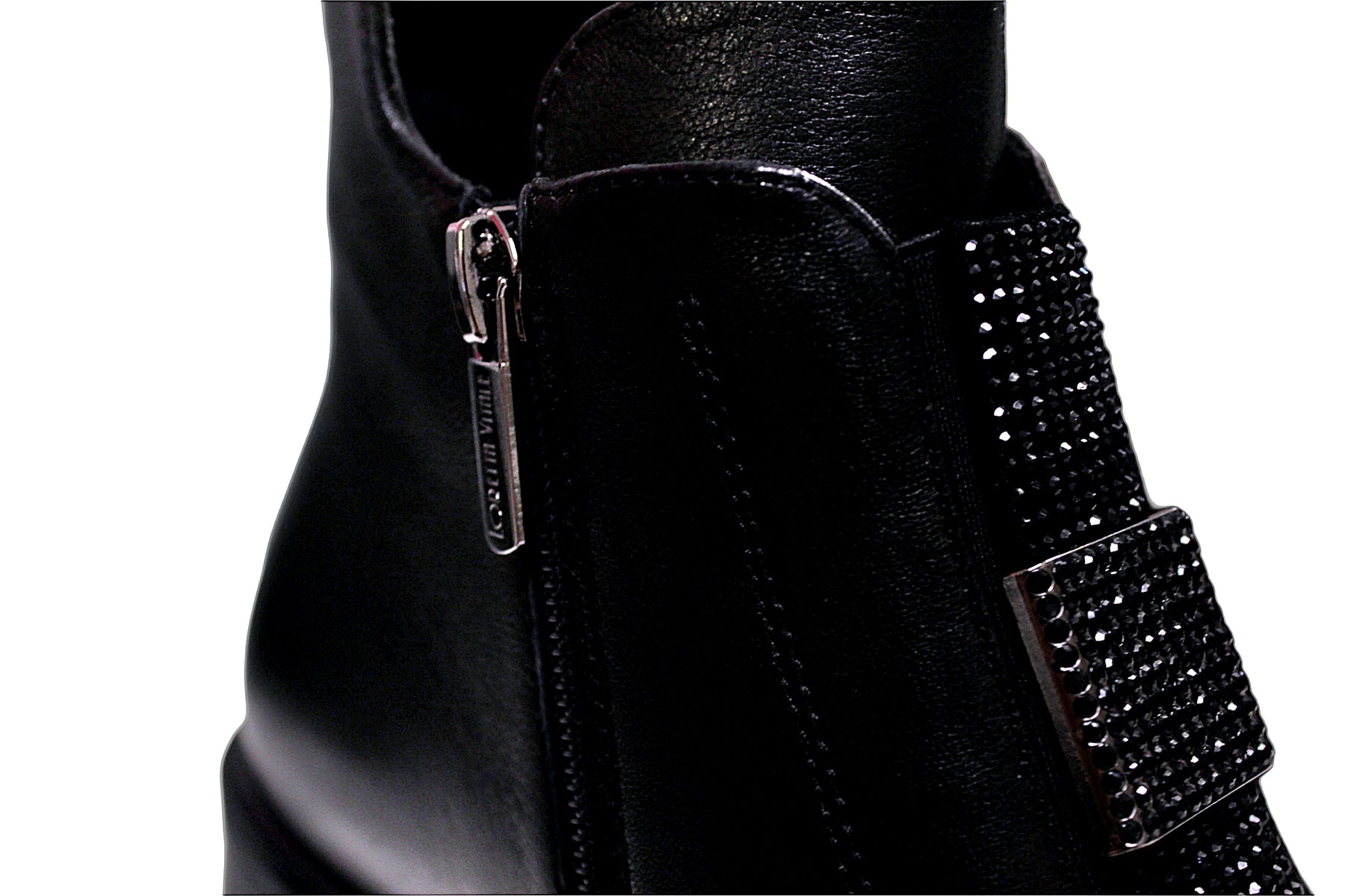 Black Leather Zip Boot With Diamante Detailing