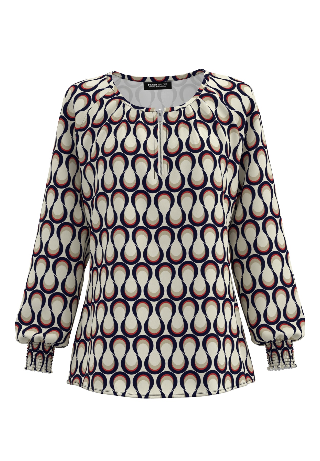 Red and Navy Round Neck Top with Zip