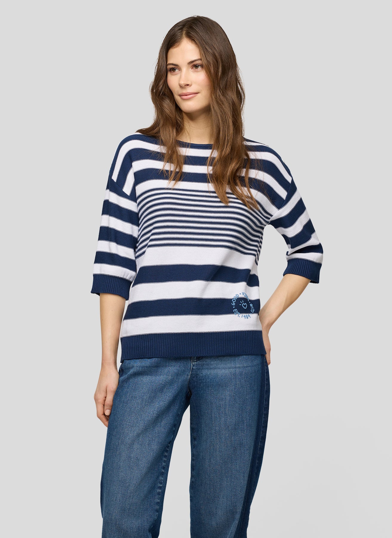 Embrace effortless style with the 'Good Vibes Club' Navy Striped Jumper—a wardrobe essential that combines timeless appeal with modern comfort. The classic navy and stripe design pairs seamlessly with everything from jeans to tailored trousers, making it your go-to layer for any occasion. Crafted for all-day wearability, this jumper delivers the perfect balance of sophistication and casual charm. Whether you're heading to the office or meeting friends, this versatile piece elevates your everyday look while keeping you cosy and confident.