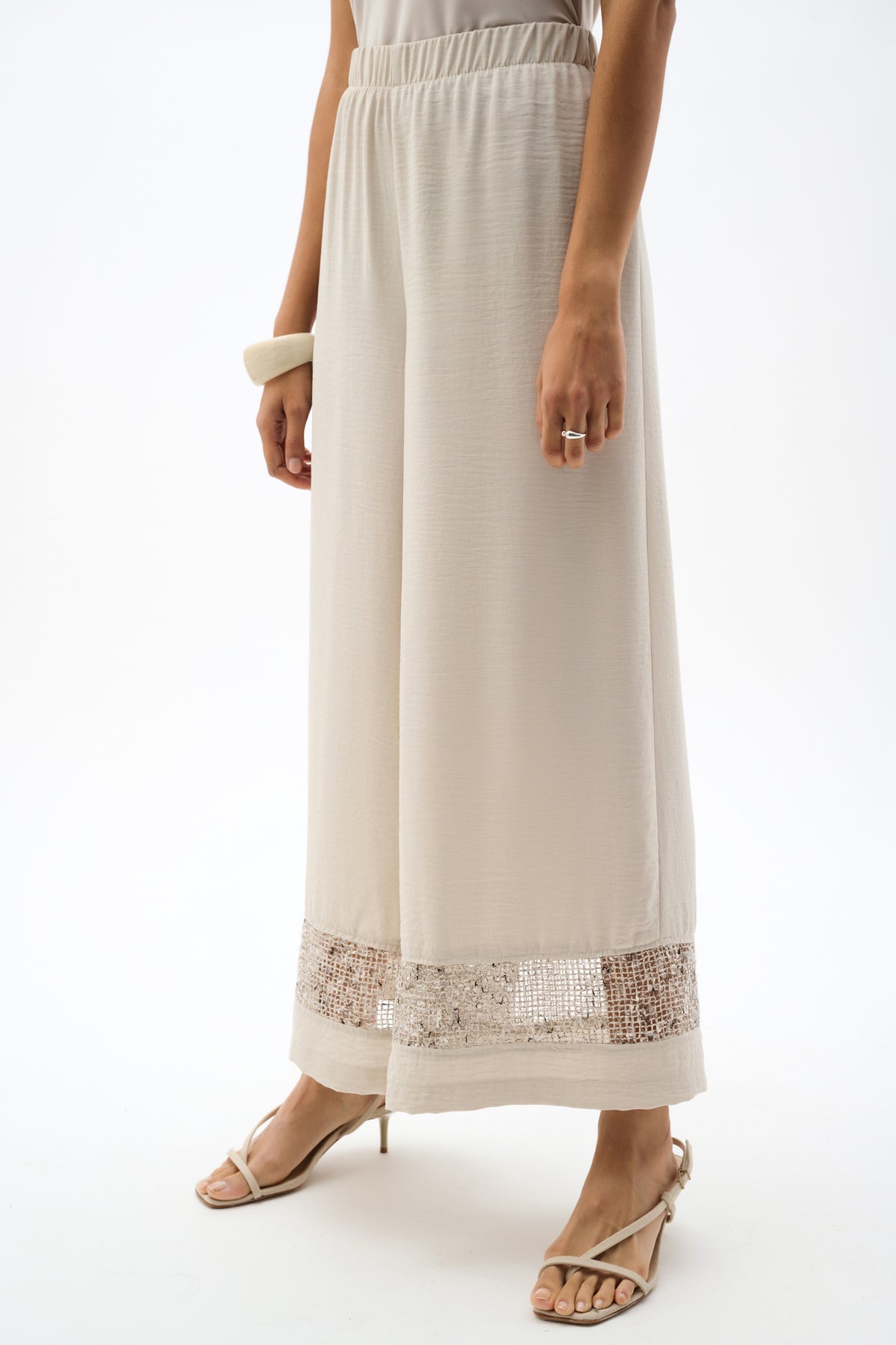 Joseph Ribkoff Gauze Pull-On Culotte Pants With Sequinned Mesh Inserts
