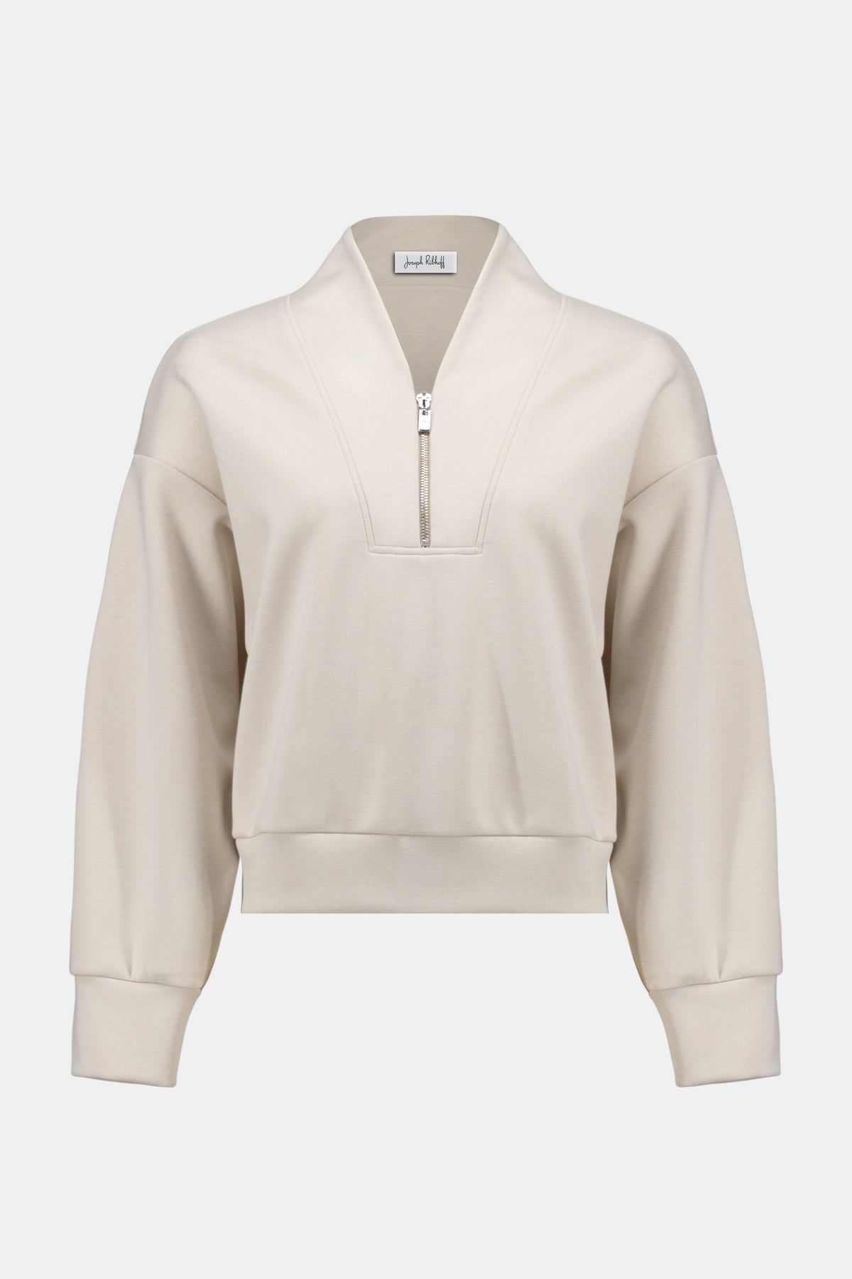 Joseph Ribkoff Moonstone Scuba Jersey Boxy Sweatshirt With High Zip Collar