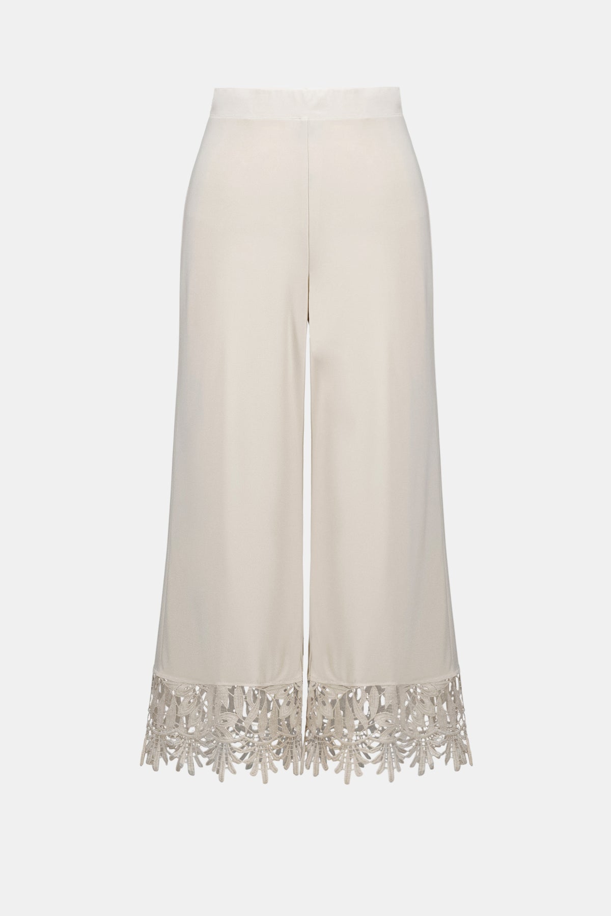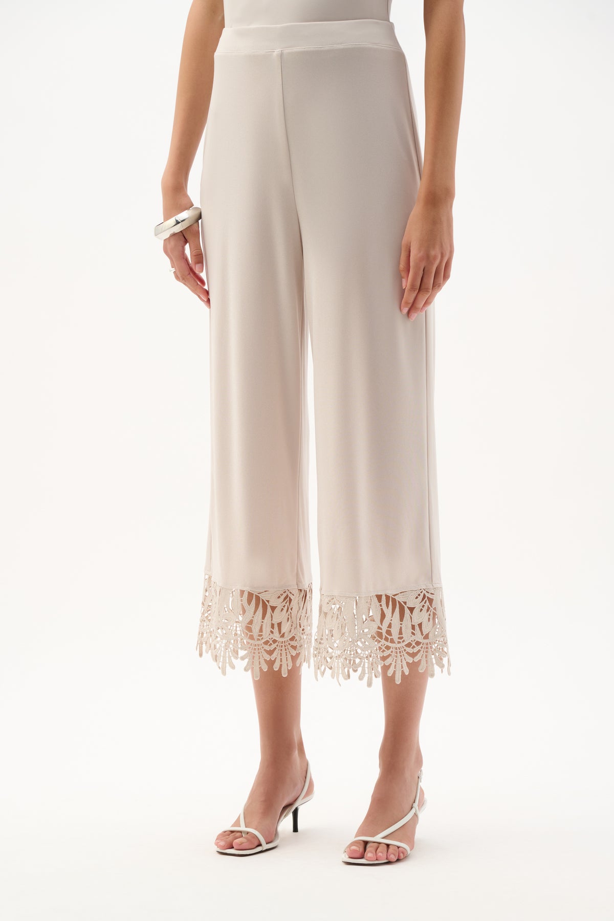 Joseph Ribkoff Moonstone Silky Knit Culotte Pants With Guipure Lace Hem