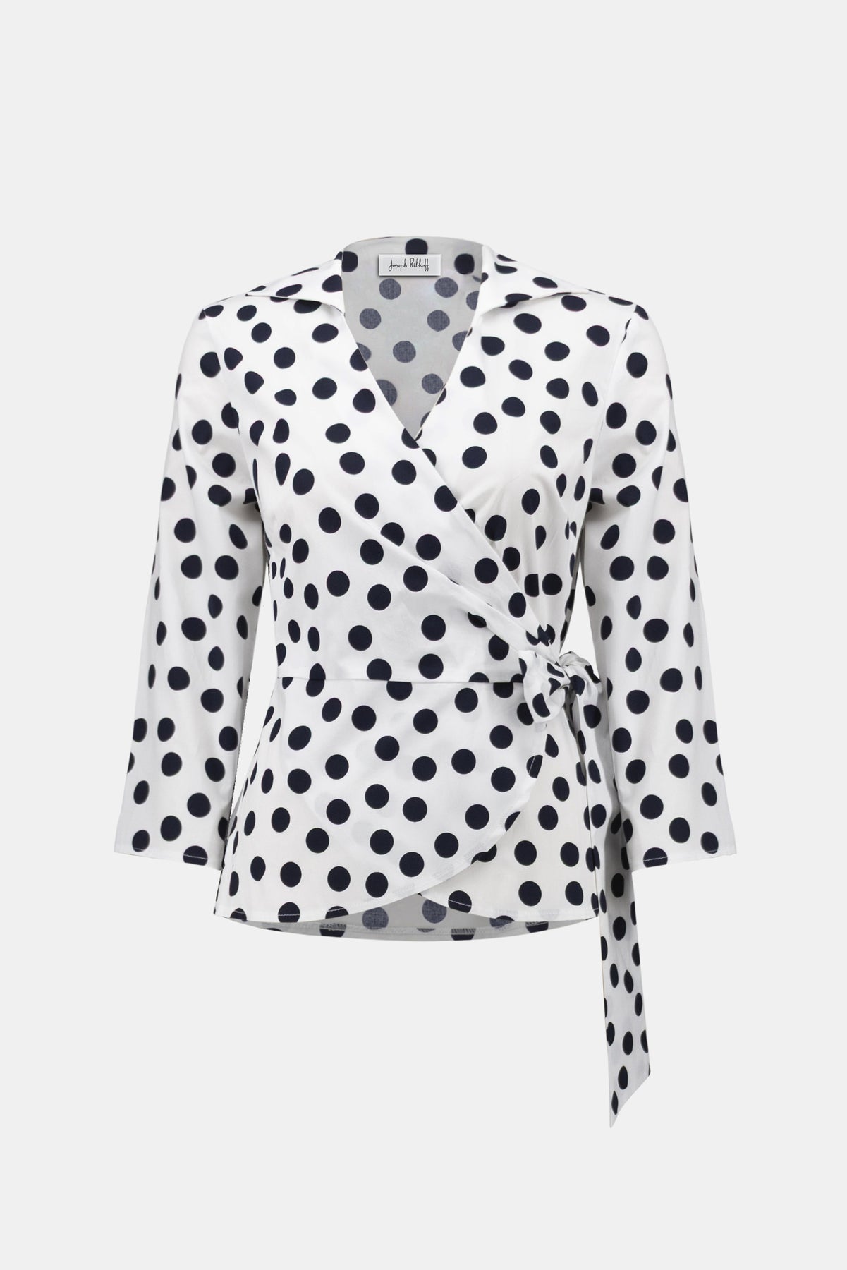Joseph Ribkoff Stretch Cotton Dot Print Wrap Top With Sash