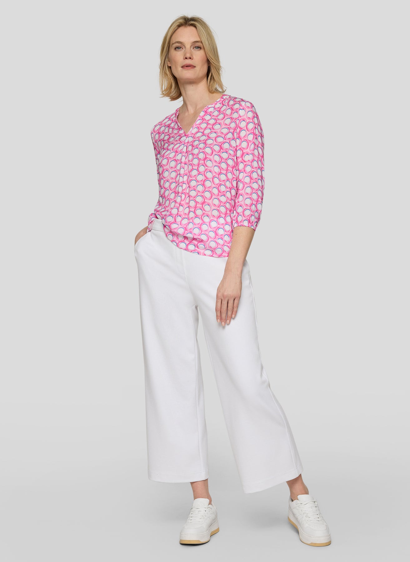 Pink/Blue/White Circle Print V-Neck Blouse Top