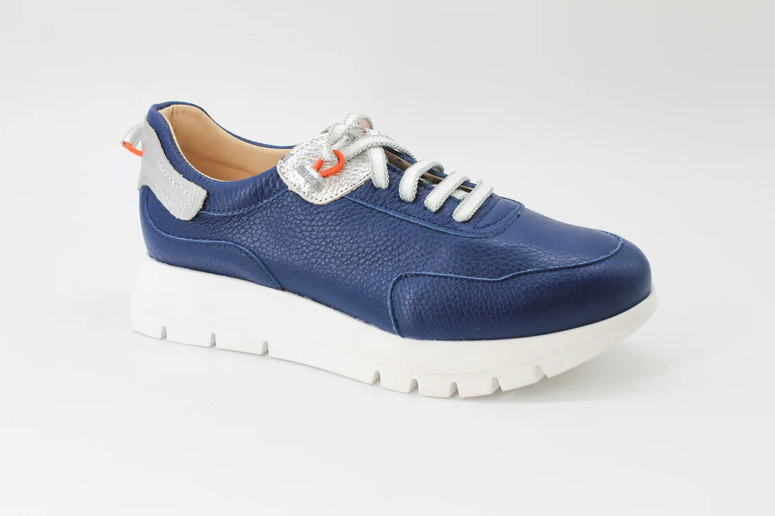 Step into effortless style with our Navy Leather Lace Up Platform Runner. Crafted from premium leather, this versatile sneaker combines classic lace-up detailing with a modern platform sole for added height and comfort. The rich navy hue pairs seamlessly with any wardrobe, from casual jeans to athleisure looks. Designed for all-day wear, the cushioned platform provides support whether you're running errands or making a fashion statement. A timeless piece that bridges the gap between sporty and sophisticated.