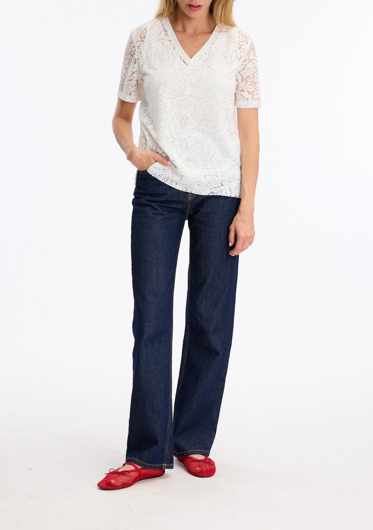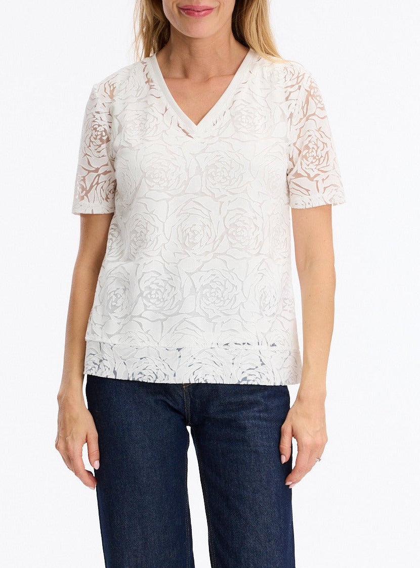 White Lace T-Shirt with V-neck