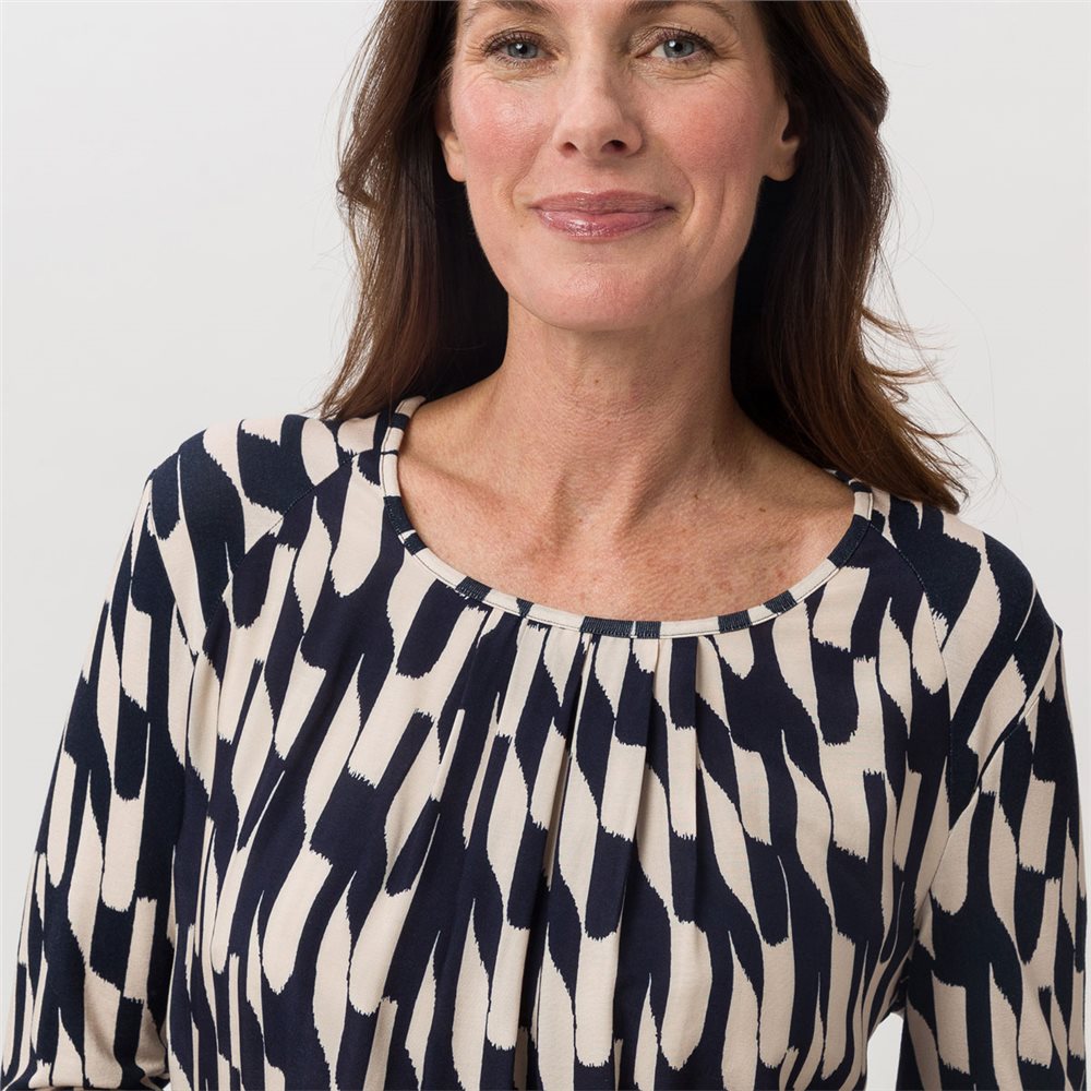 Elevate your wardrobe with this Navy and Sand Round Neck Top featuring elegant pleated detailing. Its classic round neckline and sophisticated color combination offer a versatile look perfect for both casual outings and office wear. The pleats add a refined texture that enhances your silhouette, ensuring you stand out with subtle style and comfort all day long.