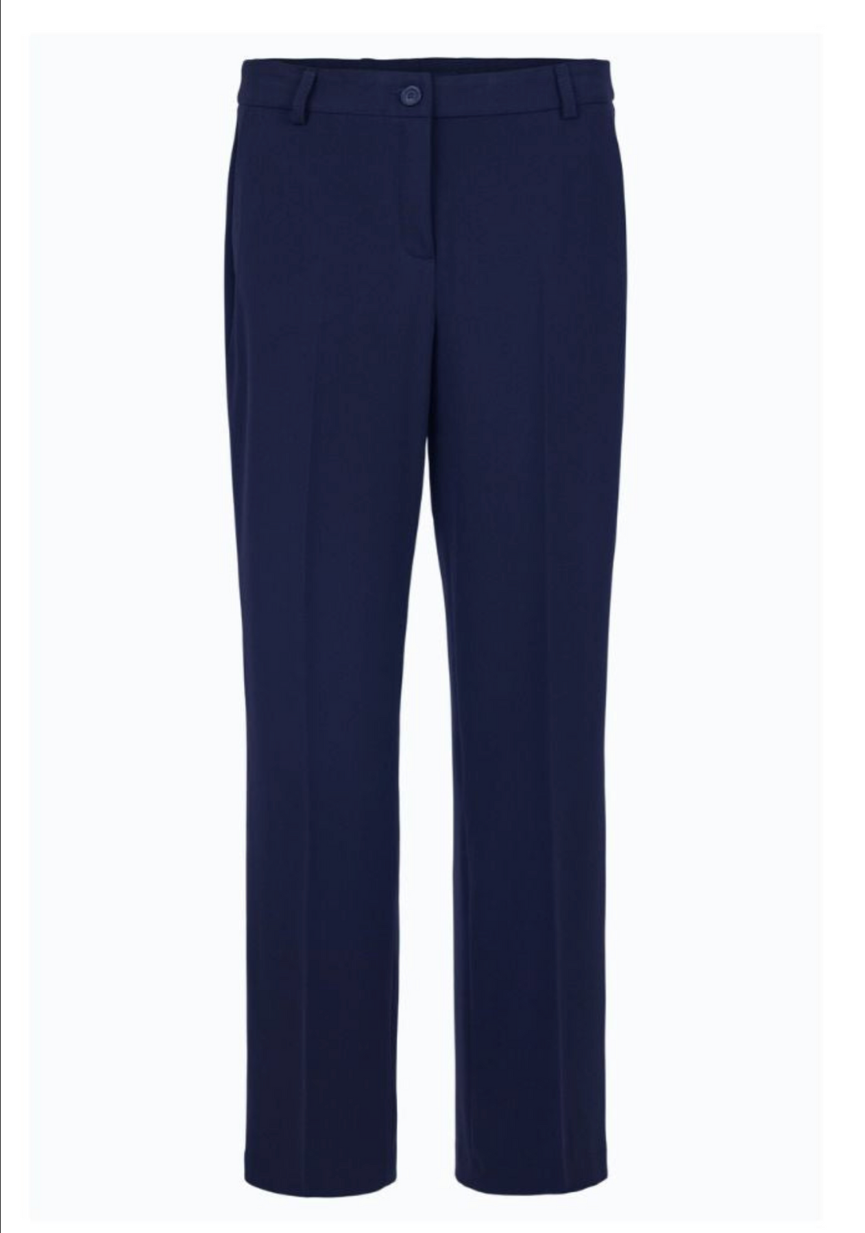 Elevate your wardrobe with the Navy 'Britt' Trousers, designed for sleek sophistication and everyday comfort. Their versatile NAVY color pairs effortlessly with any top, making them perfect for both work and social occasions. Crafted to offer a flattering fit, these trousers combine style and functionality for a polished look you can rely on all day.