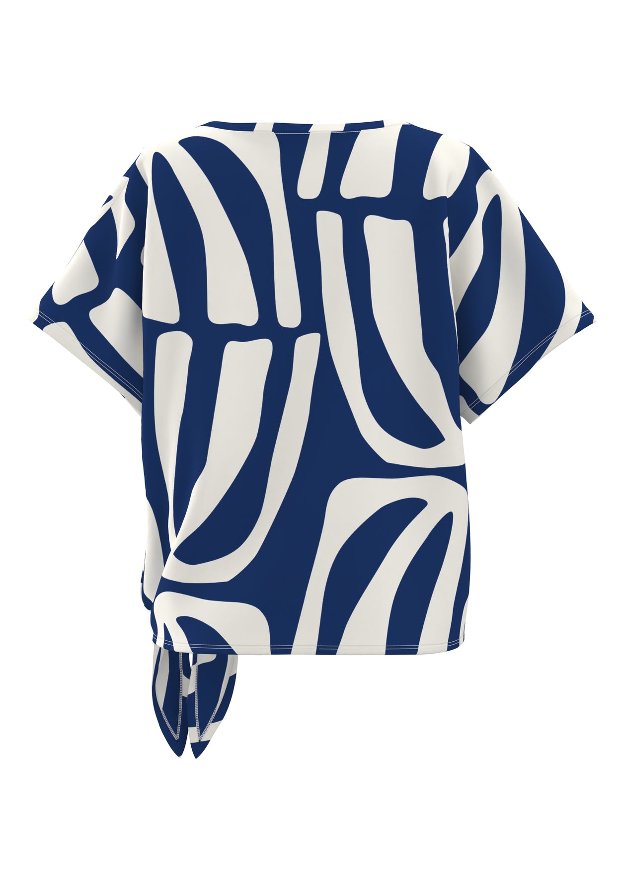 Navy and off-white colorblocking creates effortless style in this versatile tee. The distinctive tie detail at the front adds a contemporary twist that elevates your everyday wardrobe. Crafted for comfort and durability, this piece transitions seamlessly from casual weekends to relaxed workdays. The classic color palette pairs beautifully with virtually any bottoms, making it an essential staple you'll reach for again and again. Perfect for layering or wearing solo, this tee delivers both visual interest and wearable sophistication.